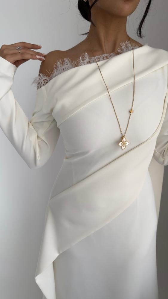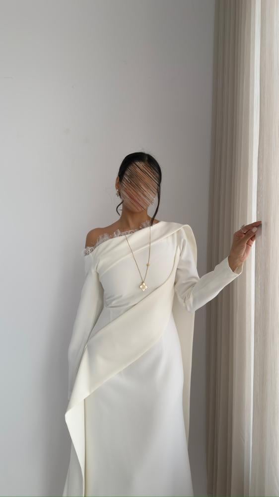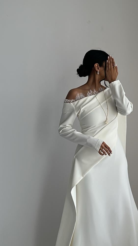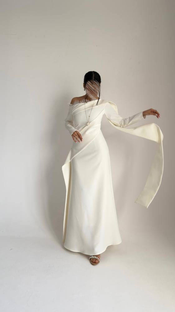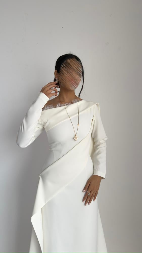 فستان كريب لون ابيض